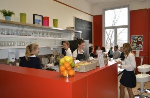 Rappelons aussi que le Café a comme objectif de ramasser de l’argent pour le Nicaragua. C’est une façon d’être solidaire avec ce partenaire et de continuer, au-delà du voyage de sensibilisation humanitaire, à s’engager auprès de ce pays, d’une manière tangible. Un autre objectif est de permettre aux élèves de se familiariser avec les étapes de la petite entreprise. En effet, les filles bénévoles participent à toutes les étapes de la mise en marché: le marketing, la production, la comptabilité et, bien entendu, le service. Finalement, le Café permet aussi de sensibiliser les élèves de l’école aux produits bio-équitables et de penser à acheter local.