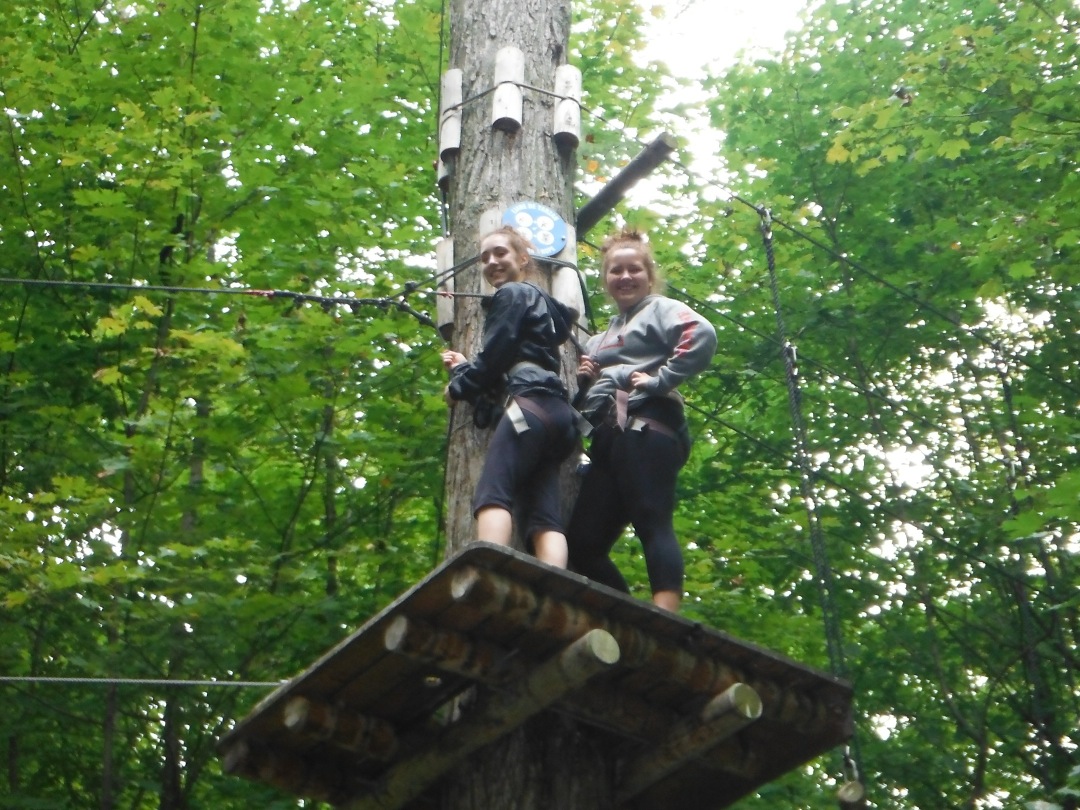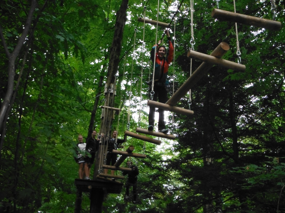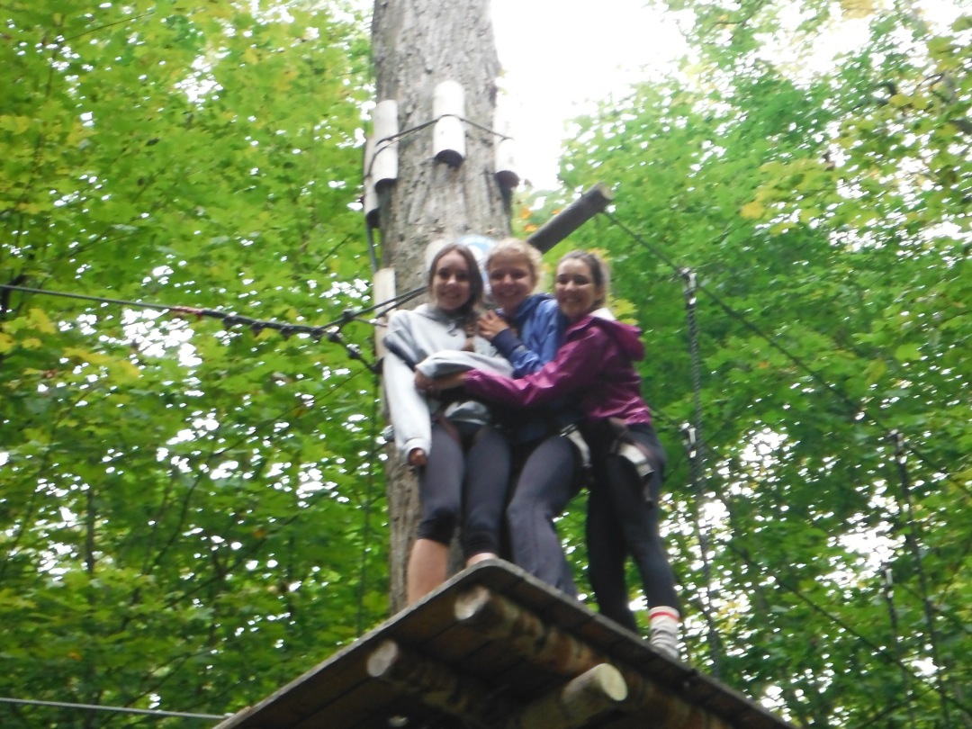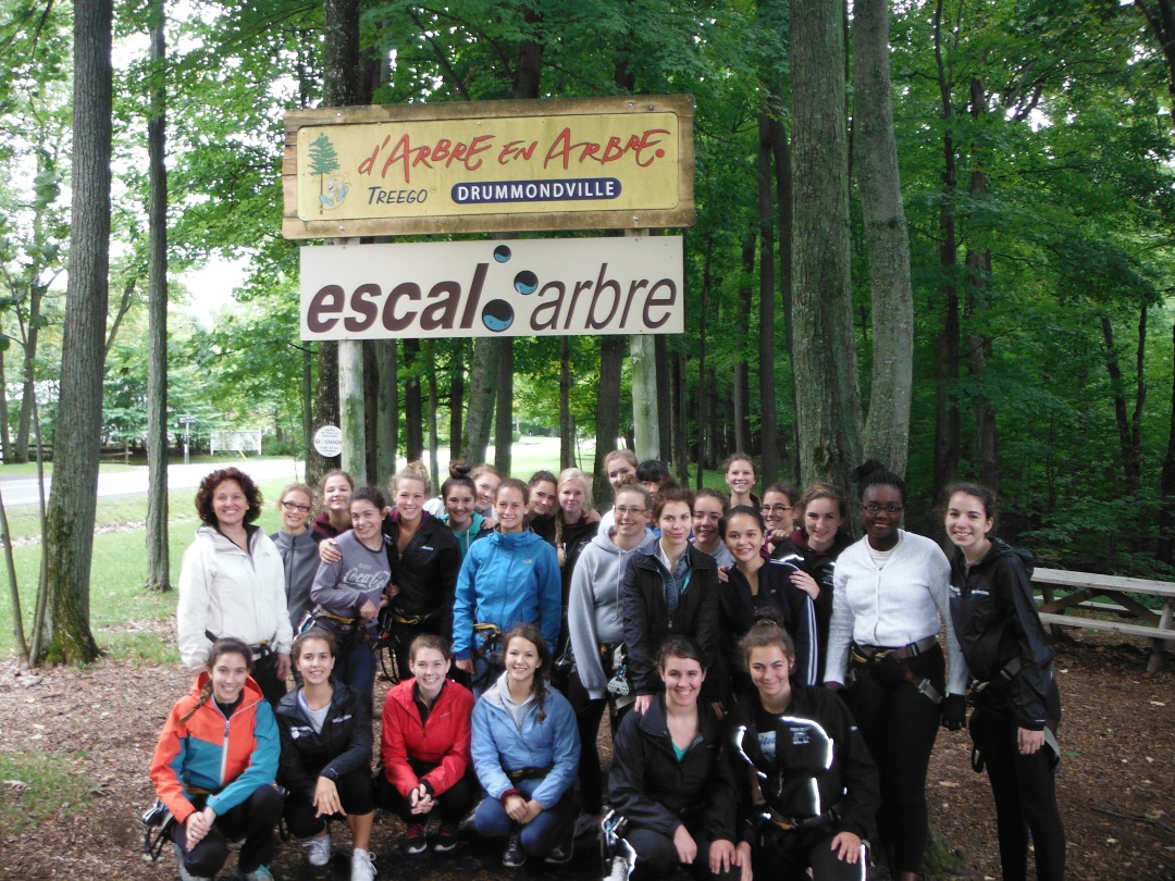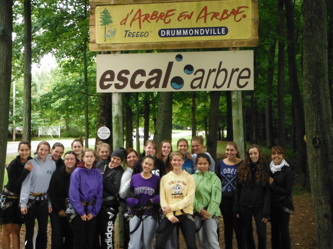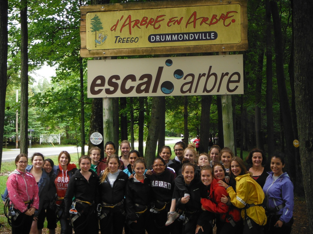 Même si le ciel crachait une abondante pluie en ce vendredi 13 en Estrie, le centre du Québec a été épargné, ce qui a permis aux filles de 4e secondaire de vivre pleinement leur sortie à D’Arbre en Arbre® Drummondville. Accompagnées de neuf accompagnateurs-enseignants, les 89 filles ont relevé les défis fixés par le centre d’hébertisme, prouvant du coup qu’elles étaient capables de relever bien d’autres épreuves!