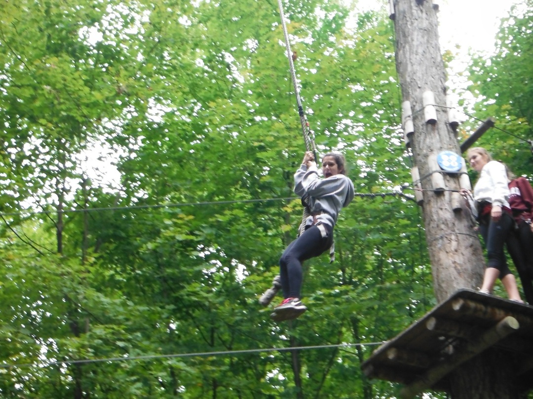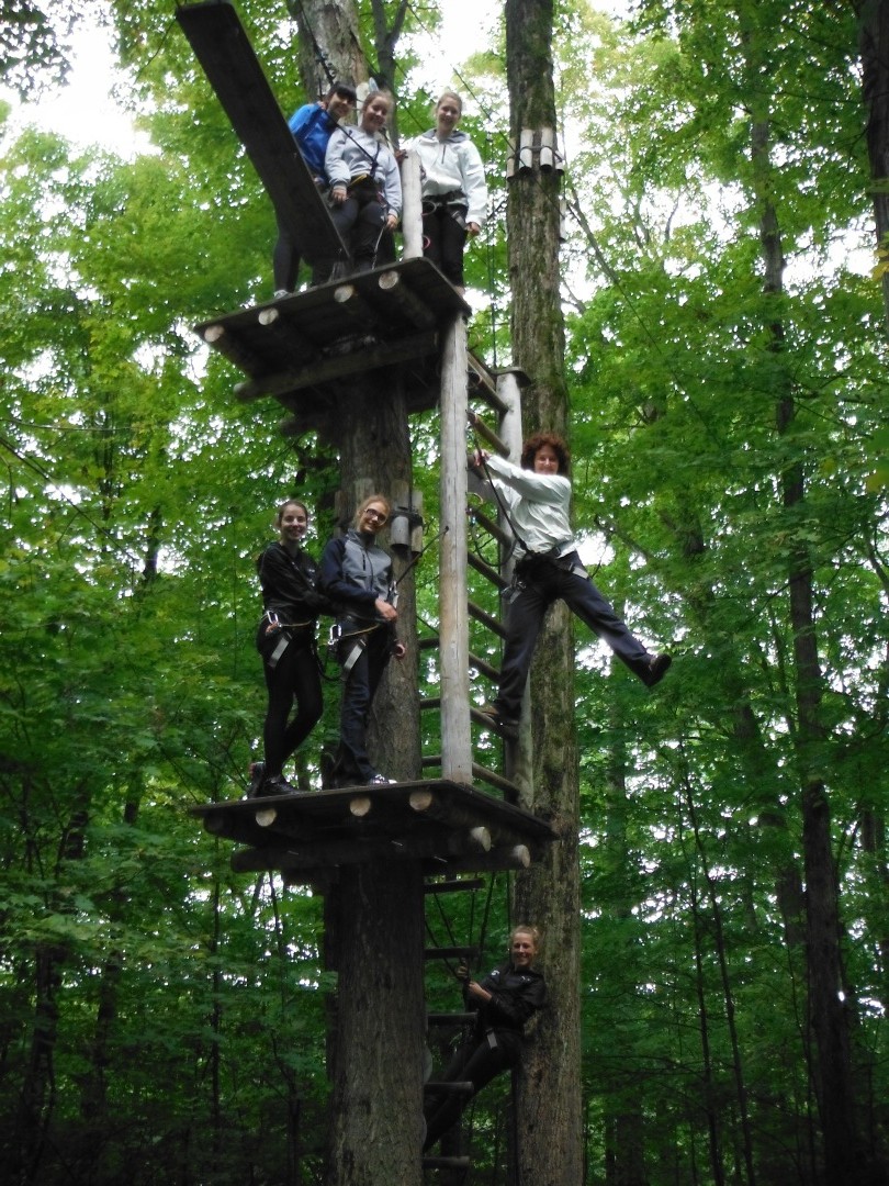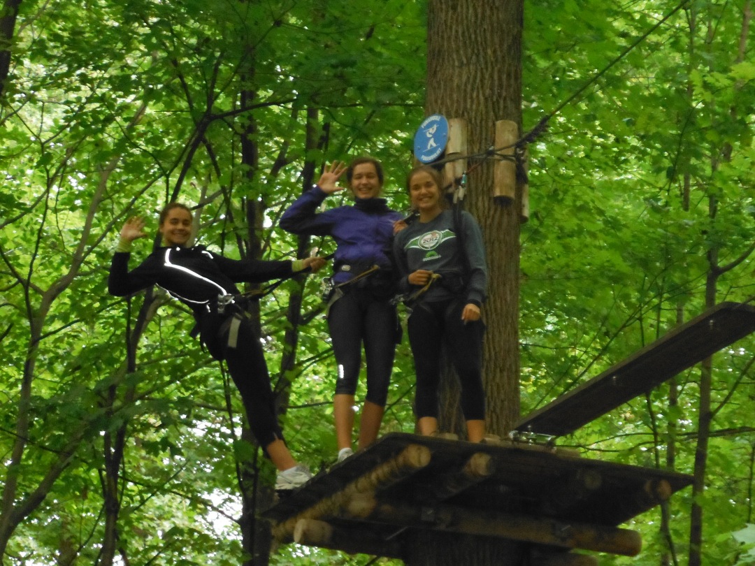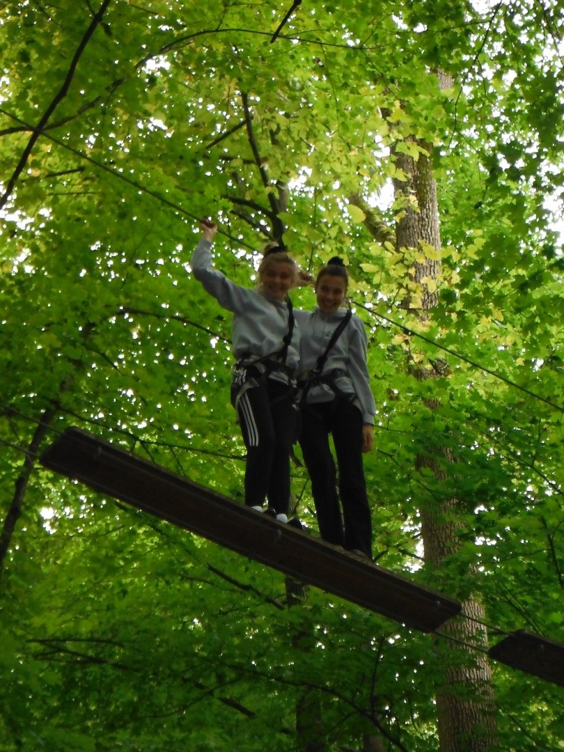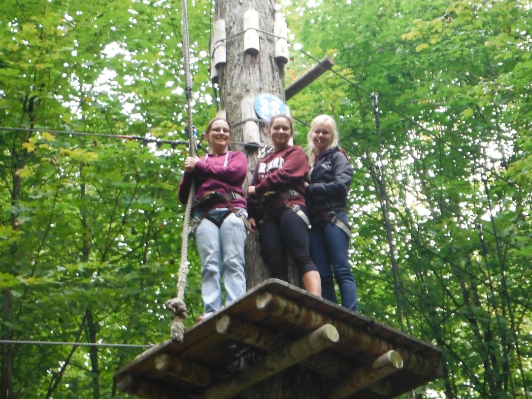 Même si le ciel crachait une abondante pluie en ce vendredi 13 en Estrie, le centre du Québec a été épargné, ce qui a permis aux filles de 4e secondaire de vivre pleinement leur sortie à D’Arbre en Arbre® Drummondville. Accompagnées de neuf accompagnateurs-enseignants, les 89 filles ont relevé les défis fixés par le centre d’hébertisme, prouvant du coup qu’elles étaient capables de relever bien d’autres épreuves!