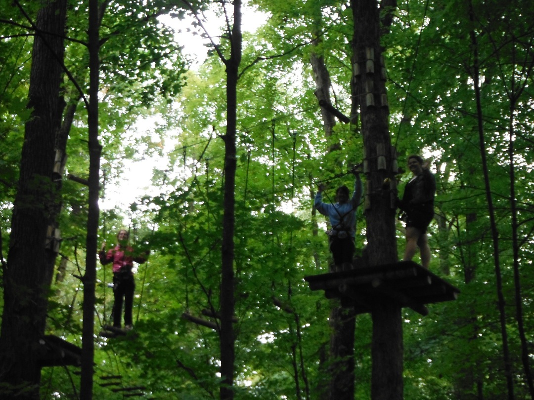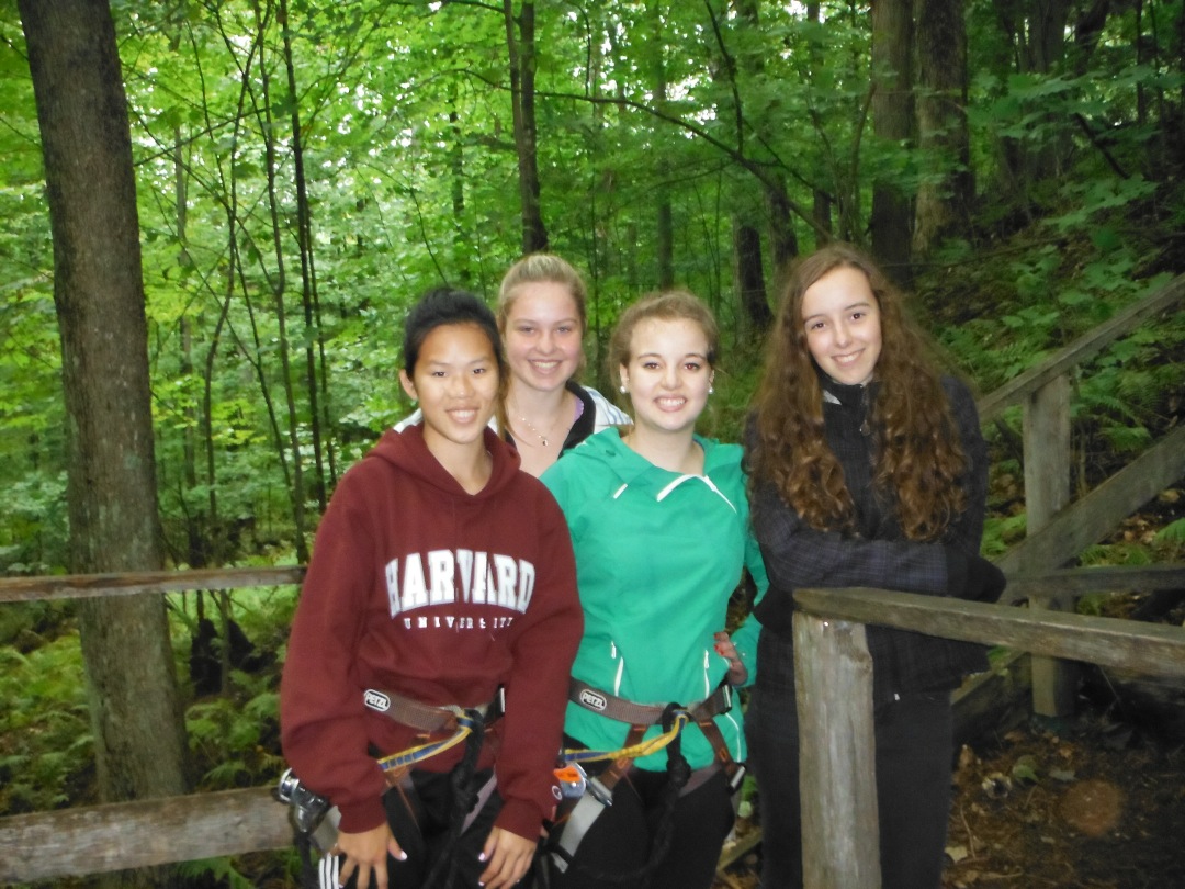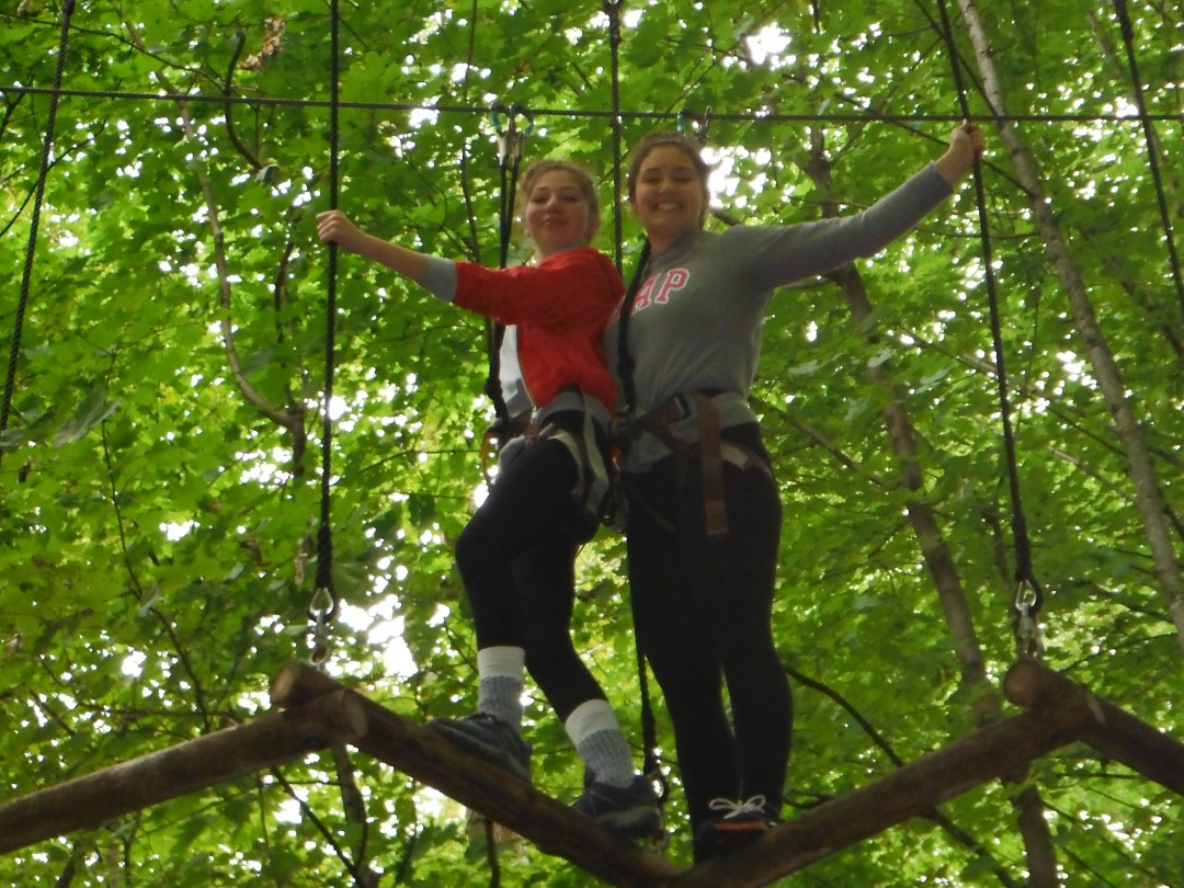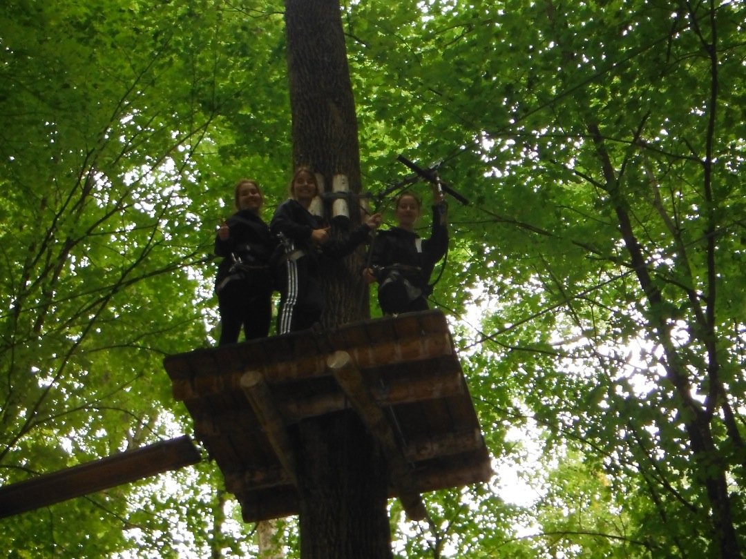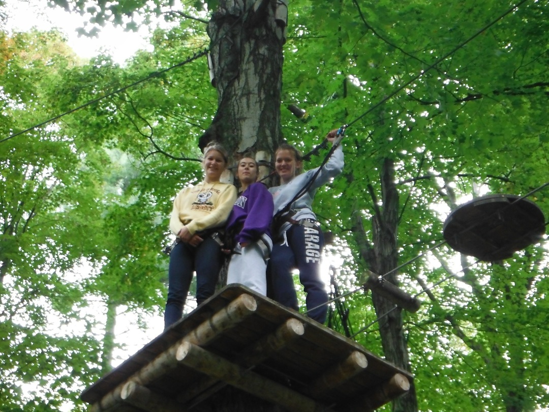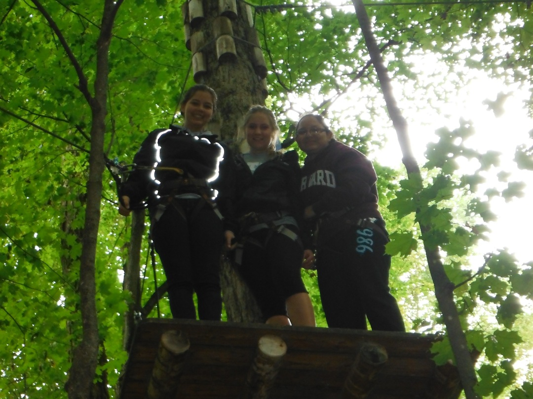 Même si le ciel crachait une abondante pluie en ce vendredi 13 en Estrie, le centre du Québec a été épargné, ce qui a permis aux filles de 4e secondaire de vivre pleinement leur sortie à D’Arbre en Arbre® Drummondville. Accompagnées de neuf accompagnateurs-enseignants, les 89 filles ont relevé les défis fixés par le centre d’hébertisme, prouvant du coup qu’elles étaient capables de relever bien d’autres épreuves!