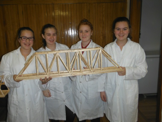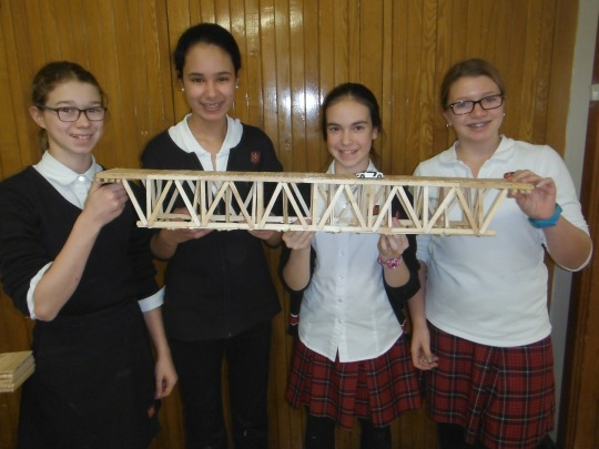 Proposé par la faculté de Génie civil de l’Université de Sherbrooke, le défi consiste à créer un pont à l’aide de bâtons en bois de type « popsicle » et de colle chaude. Le pont doit mesurer en 90 et 100 cm et doit posséder une masse totale comprise entre 700 et 1 500 grammes. Le but: soutenir la plus grande masse possible! Parmi les ponts testés à l’école, c’est celui de l’équipe d’Ann Élizabeth Rioux, de Marwa Khalil, de Yasmine Zaki et de Marie Lapointe qui a remporté la palme en réussissant à soutenir 112 livres.