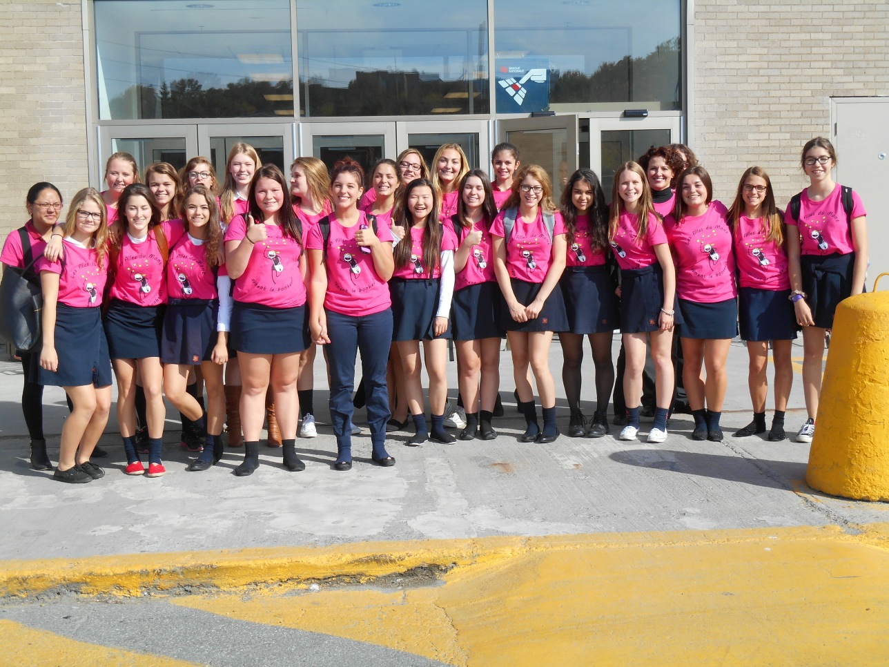 Le 25 septembre dernier, les quelque cinq cents filles du Collège Mont Notre-Dame ont contribué à semer de la joie et des sourires dans tout Sherbrooke. En effet, les élèves ont participé à une activité d’envergure où elles ont été invitées à se diriger vers une quinzaine de lieux pour aller à la rencontre des gens et distribuer sourires et bonne humeur. Estrie Aide, les Résidences Soleil, le CPE Le Bilboquet, les écoles primaires Plein Soleil et Vision school et plusieurs autres établissement ont été les hôtes de ce