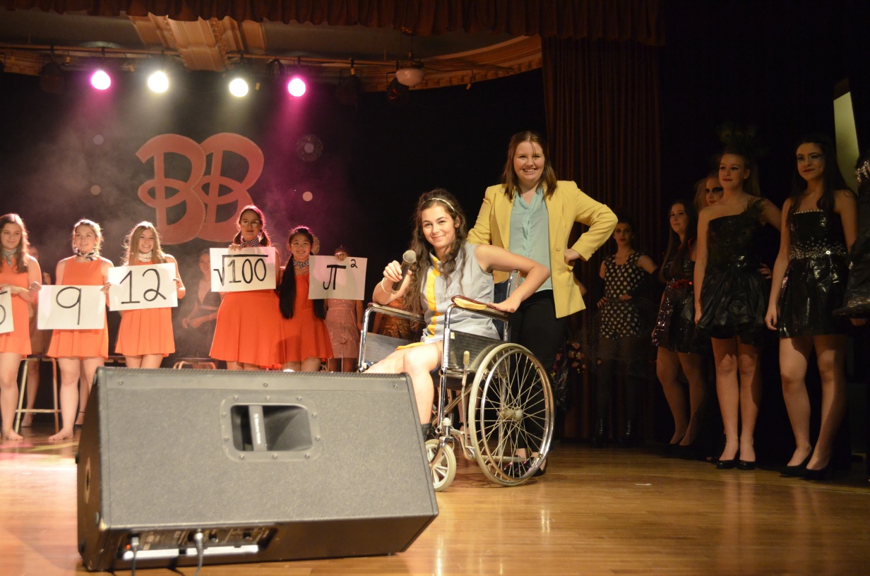 La grande salle du Collège a été le cadre d’un réel voyage dans le temps vendredi et samedi derniers. En effet, les finissantes ont relevé le défi de créer un spectacle autour du thème des années 60. Leur traditionnel Féminin pluriel, spectacle bénéfice construit et entièrement animé par des élèves de 5e secondaire, a mis en scène chansons et danses de cette décennie. L’animation a été assurée par Mykam Lemire-Théberge, Marie-Pier Morin, Elizabeth Fortin, Gabrielle Beauvais, Marianne Tétreault, Olivia Page ainsi que Catherine Robert. Elles ont incarné cinq filles du Mont qui, tentant d’accéder au vestiaire du Séminaire par le mythique tunnel, se sont retrouvées dans les années 60 sur la scène du BB show.