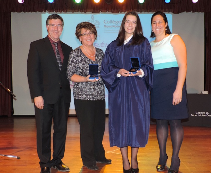 La direction du Collège a aussi profité de l’occasion pour remettre la médaille de bronze du Gouverneur général, distinction accordée à l’élève ayant eu la meilleure moyenne générale en 4e et en 5esecondaire. Ce sont mesdames Tamara Krpic et Marie-Christine Milot (présentement en Allemagne en échange étudiant) qui ont reçu ex aequo cet honneur. Mesdames Séréna Beauchesne, Camille Beauchamp-Lefebvre, Eva Boivin et Nadia Marsault étaient aussi en lice pour cette haute distinction.