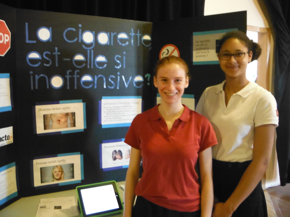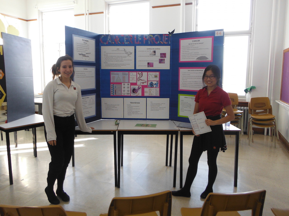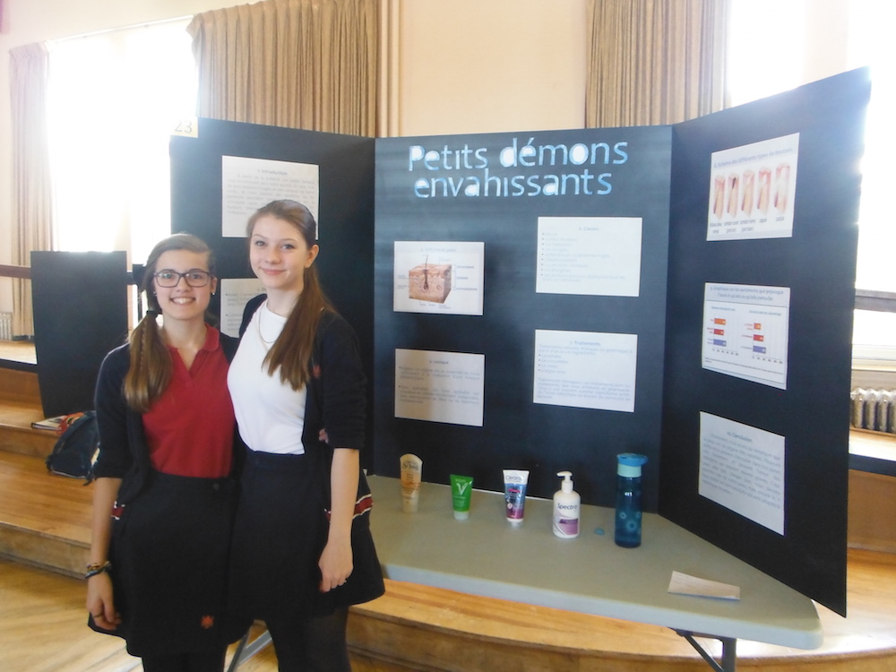 Certes, le sujet se devait d’ordre scientifique. Mais au-delà de la science, les élèves de 3e secondaire ont été amenées à développer tout un raisonnement lié au cycle de conception, en lien avec le design, une matière du programme d’éducation internationale. Elles étaient aussi évaluées dans le cadre de leur cours de français et ont ainsi dû travailler tout l’aspect de la communication, tant visuelle qu’orale. Elles ont donc réalisé un travail relié à trois matières qui a nécessité beaucoup de temps et d’énergie, mais qui a donné des résultats ô combien satisfaisants. En effet, en regardant les kiosques, les visiteurs s’entendaient pour dire que le résultat était de haut niveau.