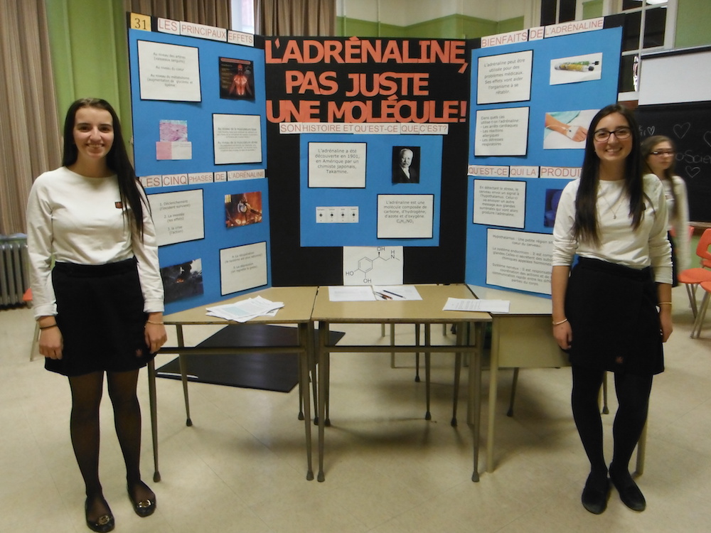 Le mercredi 14 janvier dernier avait lieu la deuxième expo-sciences locale au Collège Mont Notre-Dame. Quelque 49 sujets scientifiques étaient présentés aux élèves de l’école en après-midi et aux parents en soirée. Quelques élèves de 4e et de 5 secondaire ont pris part à l’événement, mais ce sont essentiellement les élèves de 3e secondaire qui, dans le cadre de leur cours de sciences et technologie, ont travaillé d’arrache-pied pendant plusieurs mois pour mener à bien ce travail d’envergure relié à une problématique ou à un thème lié aux sciences. Le but: informer ou sensibiliser les visiteurs. Le but ultime: être sélectionnées pour participer à l’expo-sciences régionale!
