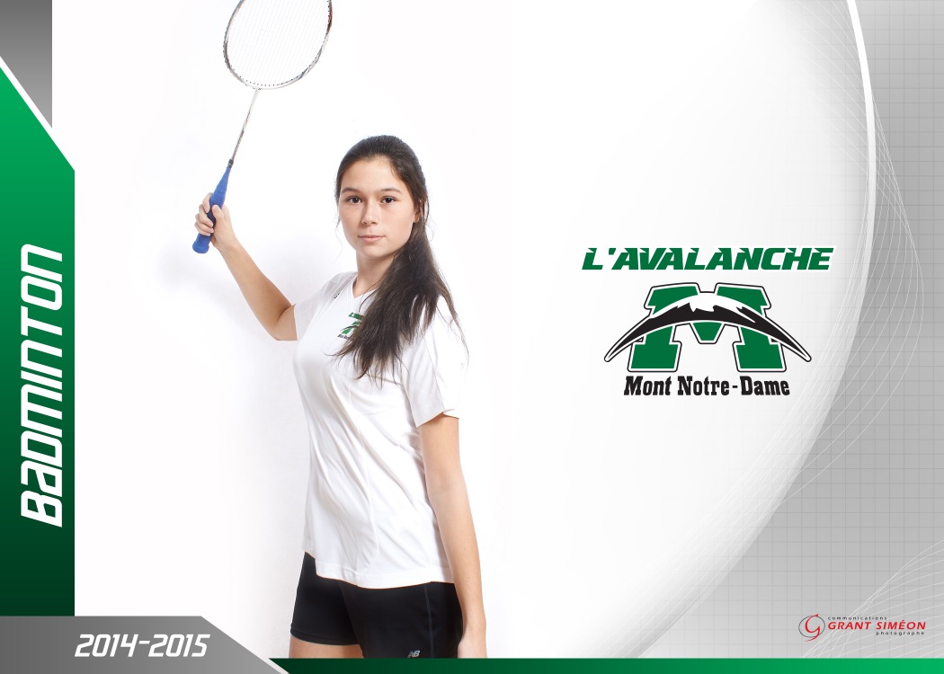 Mélissa BoivinMélissa Boivin fait partie de l’équipe cadette de badminton de l’Avalanche. Cette jeune athlète a eu un mois d’avril exceptionnel. Tout d’abord, elle a remporté la médaille d’or au championnat régional de badminton qui avait lieu le 11 avril dernier. En étant sacrés champions régionaux, son partenaire de double mixte, Jérémy Blier, et elle avaient donc un accès au championnat provincial qui se déroulait à Chicoutimi du 24 au 26 avril derniers. Forts d’un parcours sans défaite en ronde préliminaire le samedi, ils ont continué à bien performer en ronde des médailles en remportant l’or à la grande finale le dimanche. Mélissa est donc championne provinciale de sa catégorie. Une belle réussite!