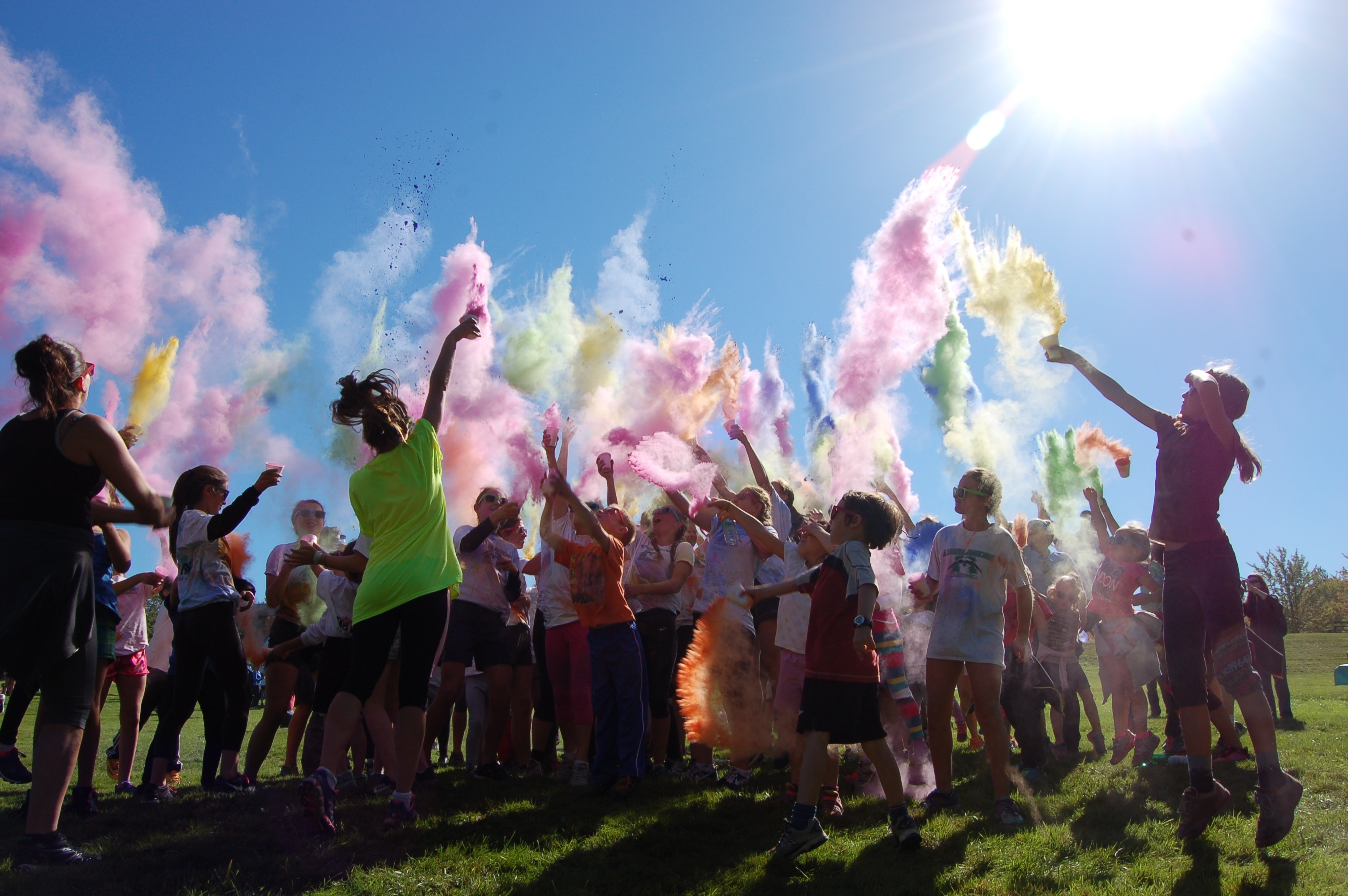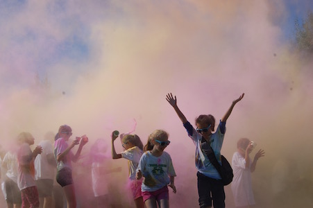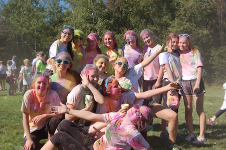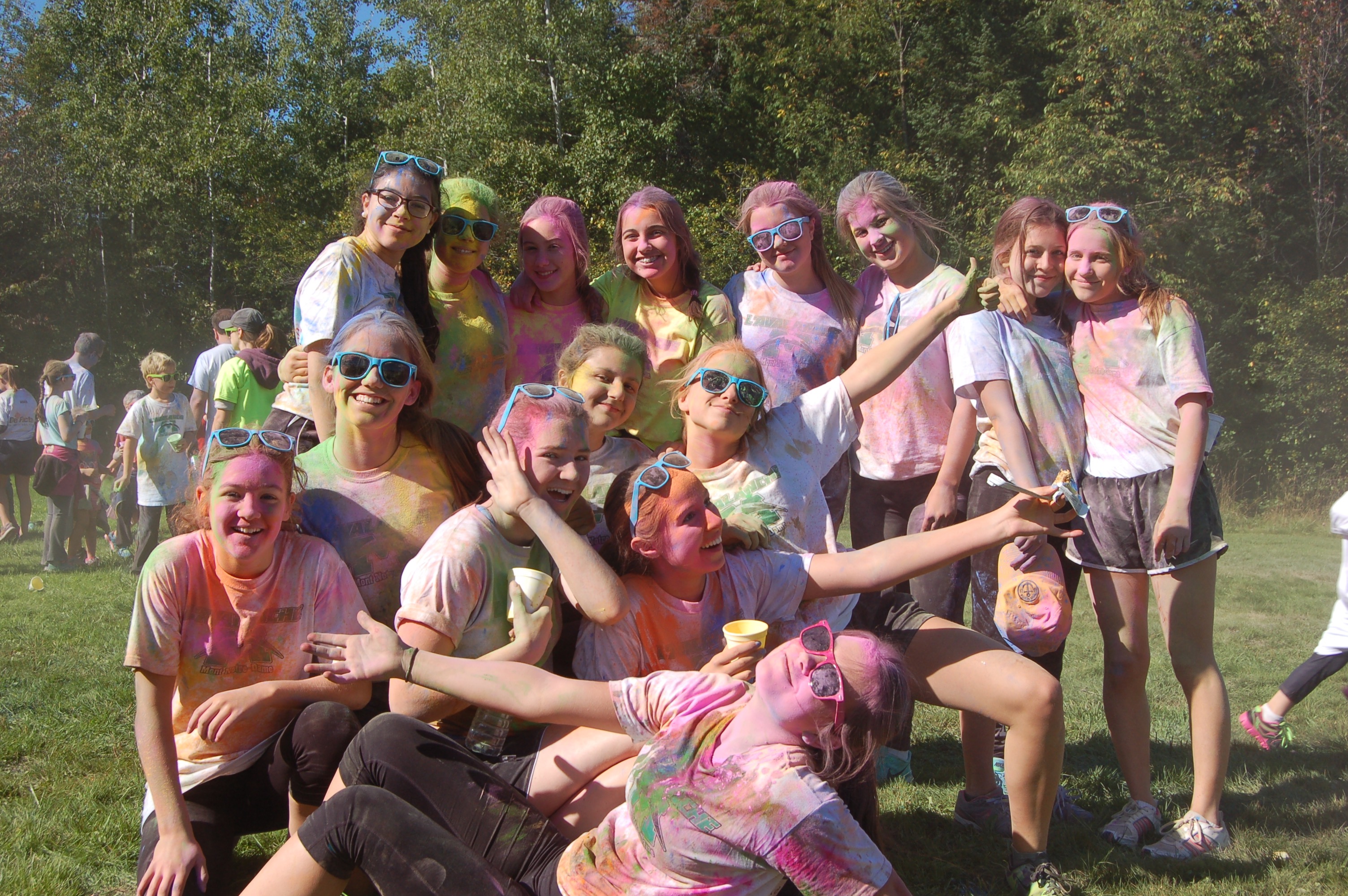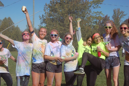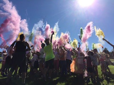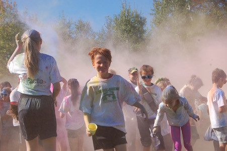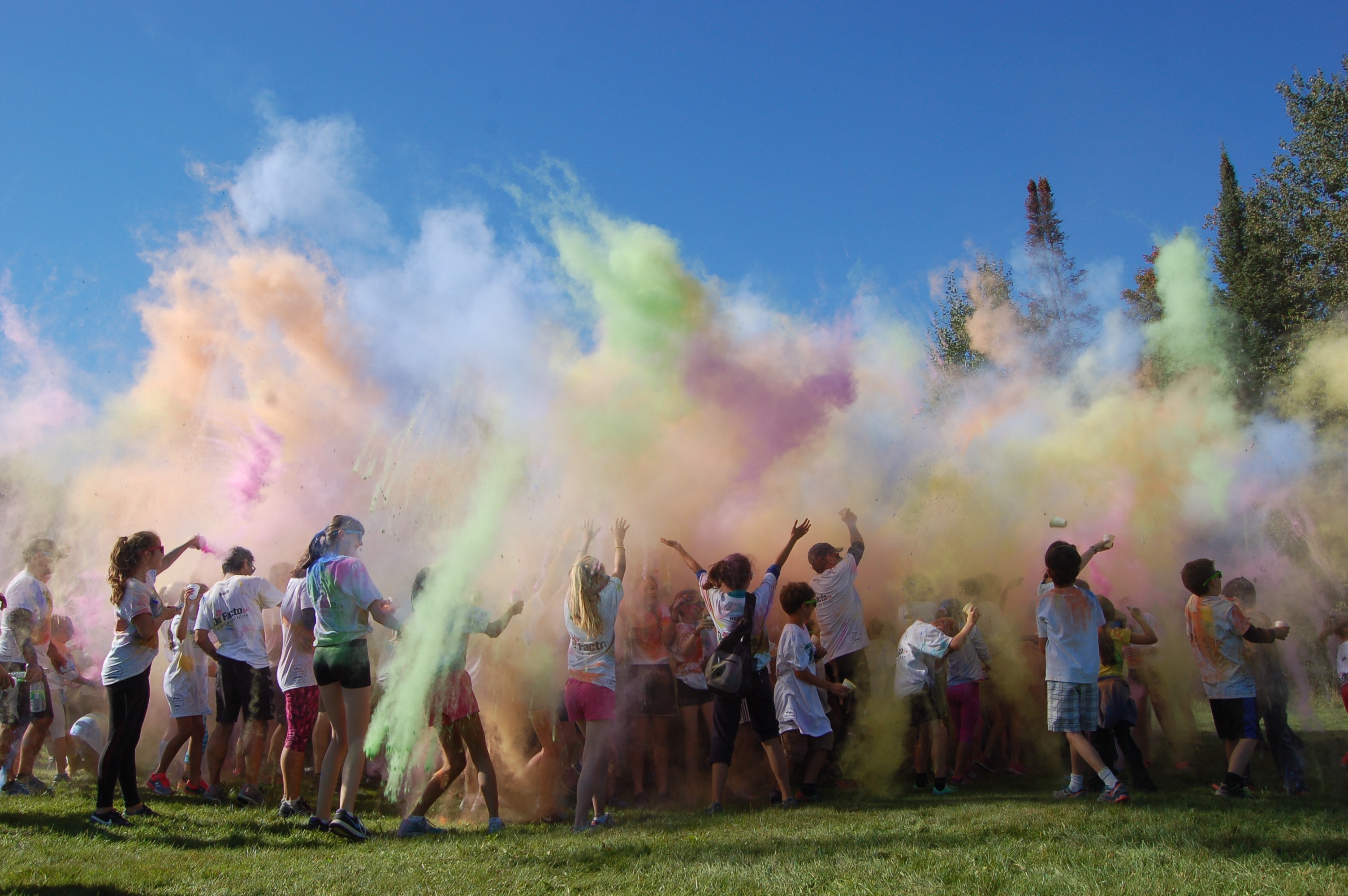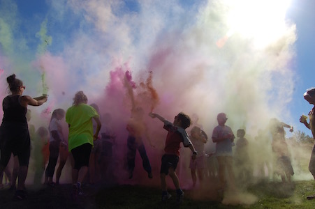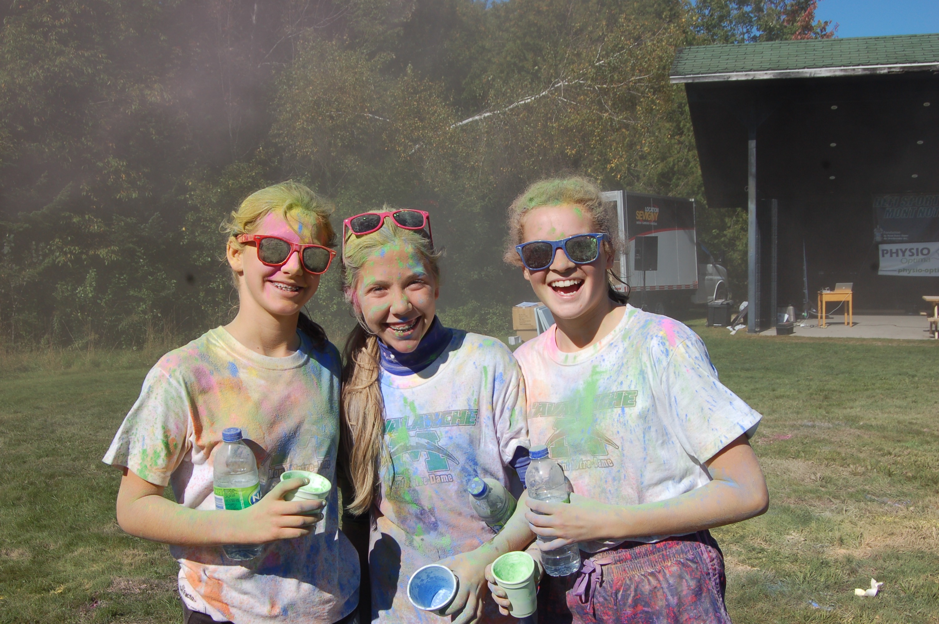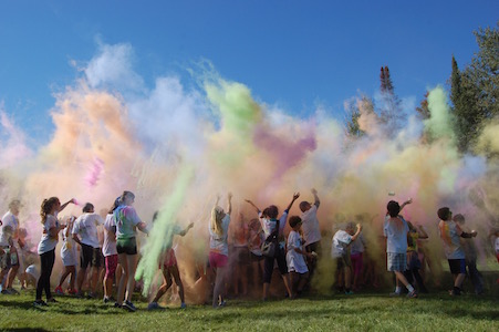 Dimanche dernier avait lieu la troisième édition du défi de la Fondation du Collège Mont Notre-Dame sous le thème Avalanche de couleurs. L’événement s’est tenu à la base de plein air André-Nadeau sous les rayons du soleil automnal. L’épreuve de 5 km était jalonnée de stations de lancement de bombes de couleurs composées de fécule de maïs colorée. Le défi s’est terminé par trois lancements de bombes de couleurs par tous les participants, un moment spectaculaire haut en couleurs!