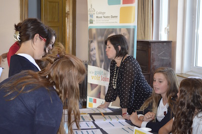 Le 1er octobre, en après-midi, se déroulait le Salon Service-Action du Collège Mont Notre-Dame. Une vingtaine d’organismes de la région ont accepté l’invitation du Collège et ont utilisé cette vitrine qu’est le Salon pour présenter la mission de leur organisme et leurs besoins en recrutement de bénévoles. Cet événement facilite grandement la recherche de nos élèves : elles ont ainsi plus facilement accès aux divers organismes et s’assurent ainsi de répondre directement aux besoins de la communauté. Mais cela est aussi aidant pour les organismes qui ont ainsi accès à un bassin de bénévoles dévouées, une ressource précieuse pour la réussite de leurs activités. En effet, l’école compte cette année plus de 400 élèves inscrites au programme d’éducation internationale qui doivent s’engager par l’action bénévole dans la communauté. À elles s’ajoutent toutes les filles de l’école qui n’ont pas cette obligation et qui le font… gratuitement!