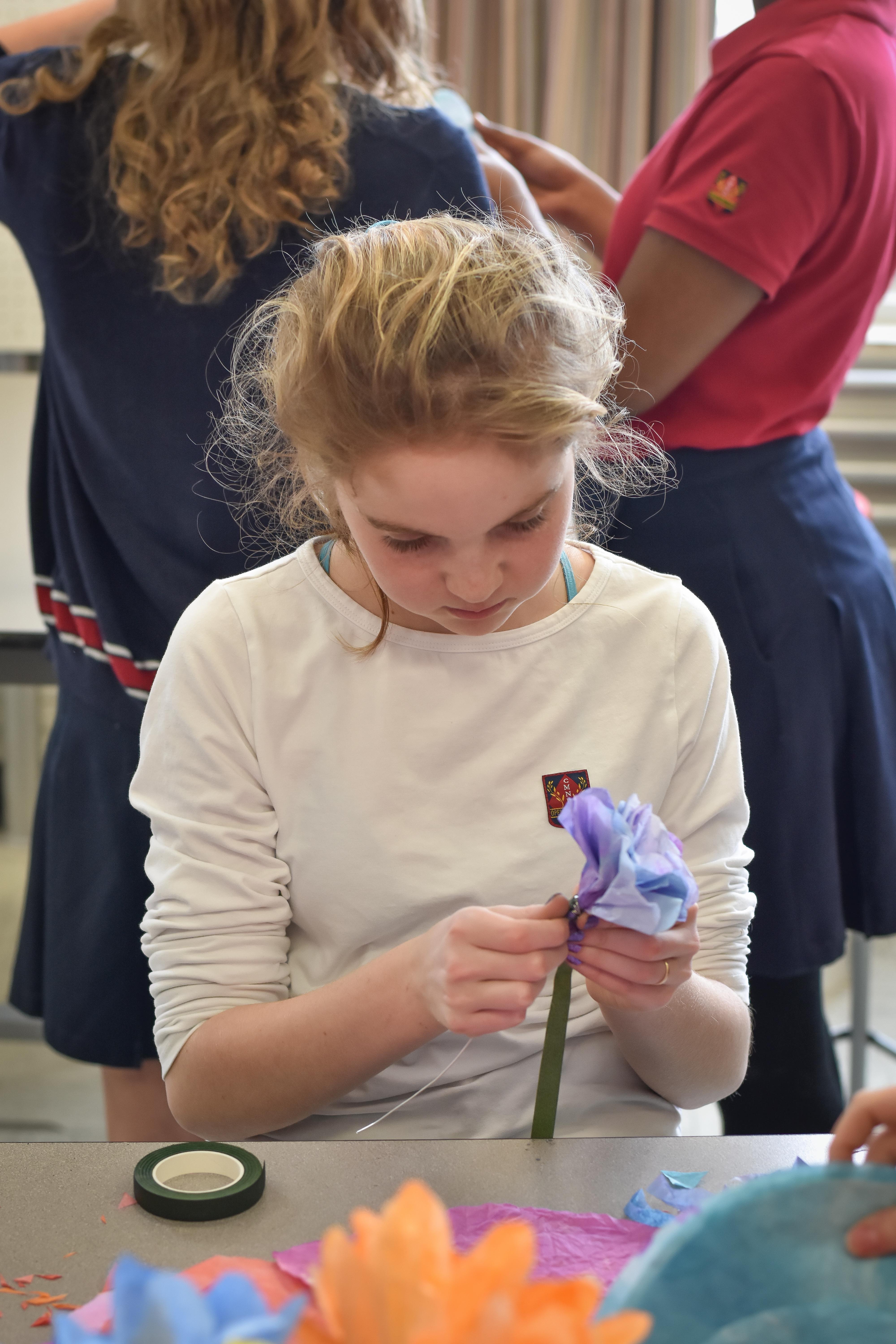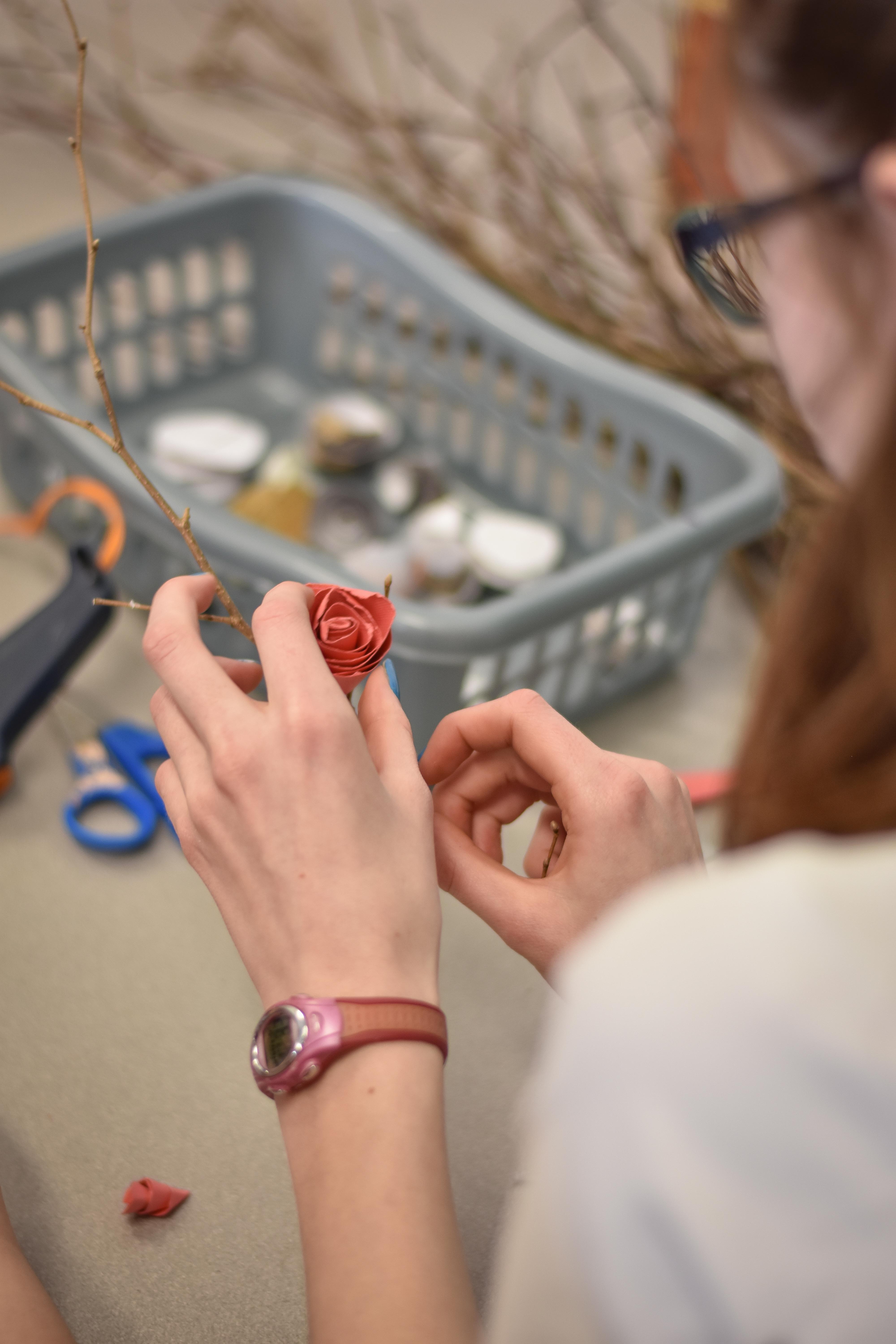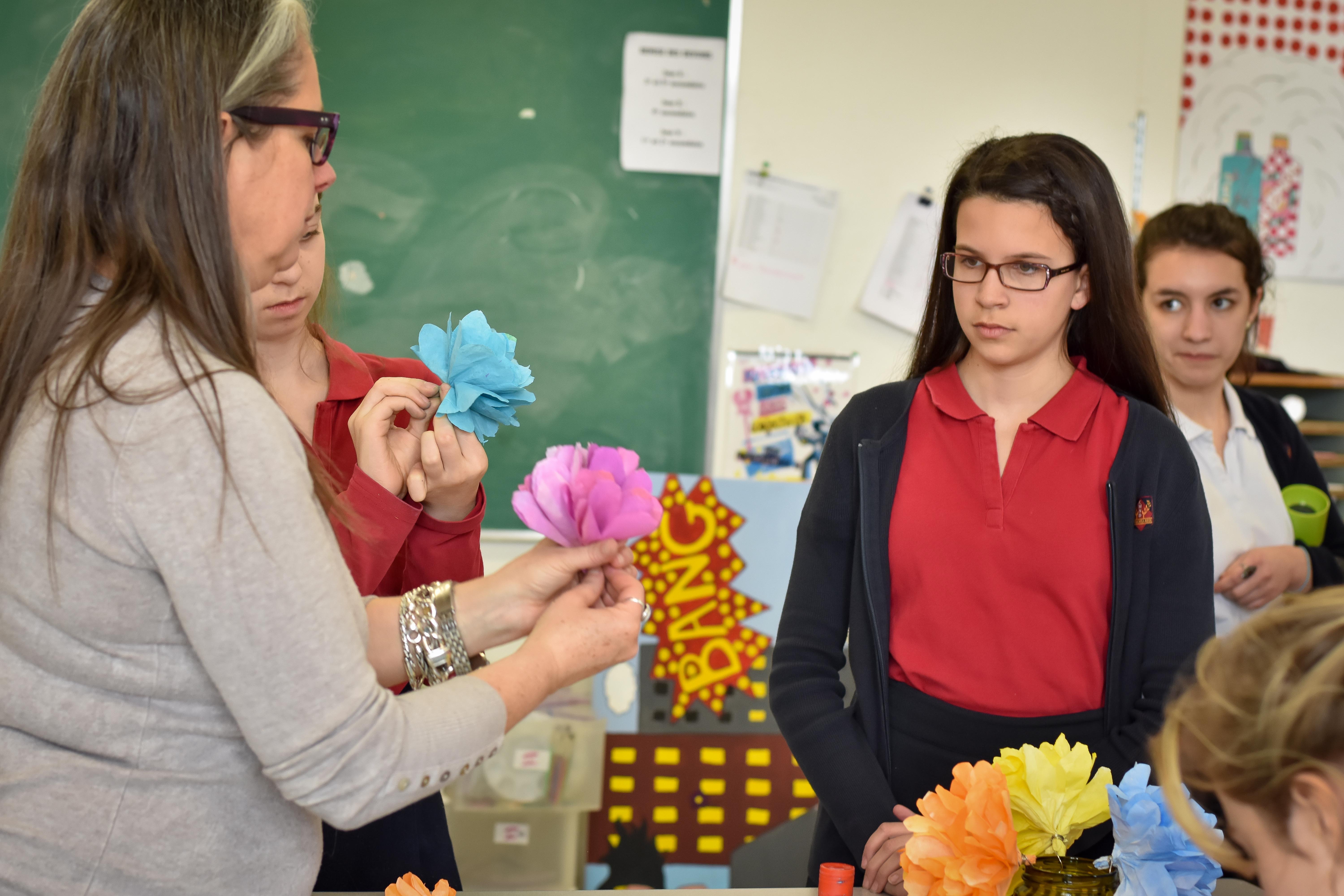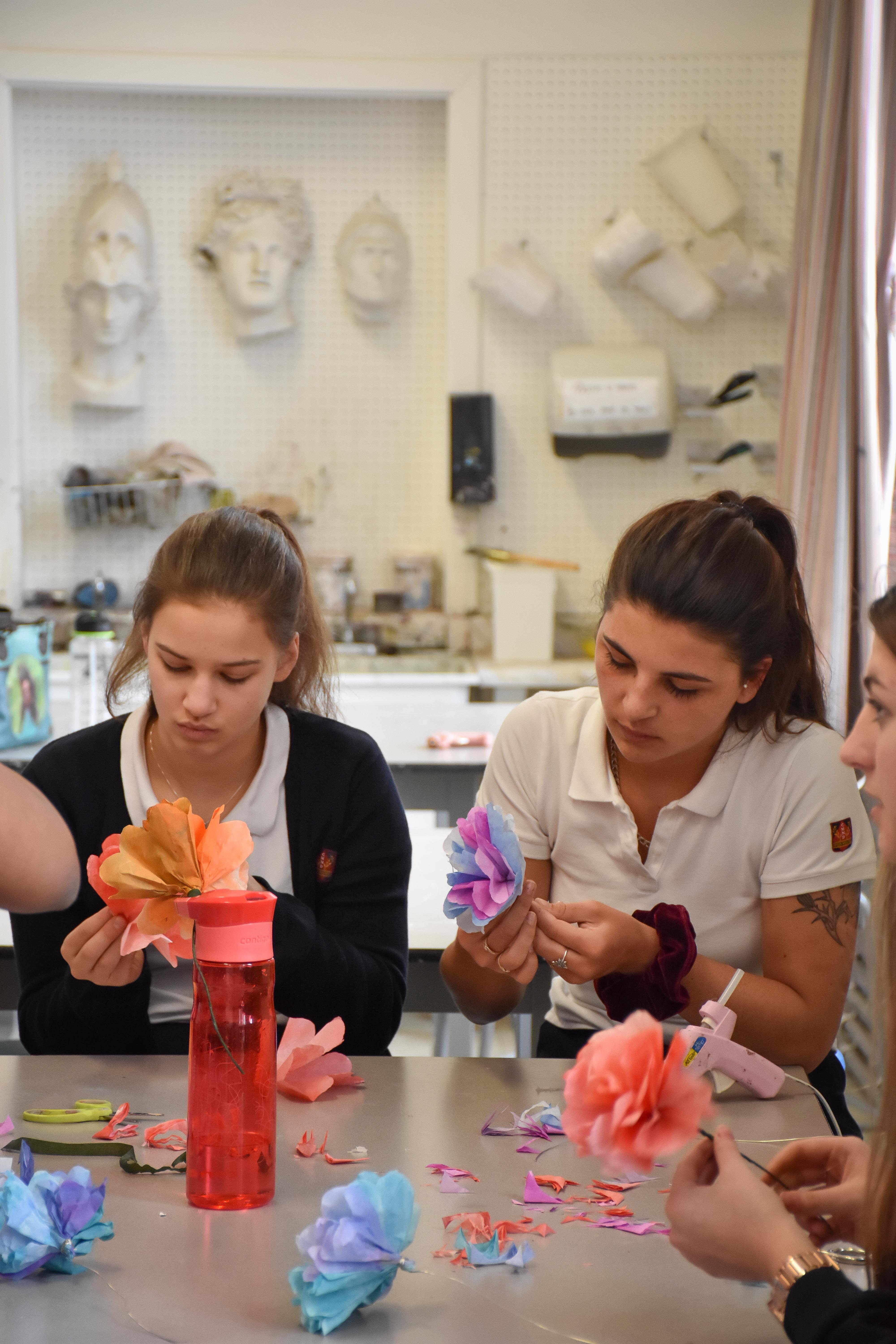 Le Collège a souhaité souligner la journée internationale des droits des femmes sous le thème Une femme, une fleur pour reconnaître des femmes de notre entourage. En effet, les élèves et les membres du personnel ont été invités à un atelier de création de fleurs de papier. Chacun devait ensuite remettre sa fleur immortelle à une femme significative.