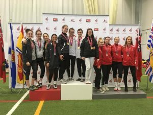 Cinq escrimeuses du CMND, anciennes et actuelles, étaient présentes en fin de semaine au Championnat du Canada qui se tenait à Gatineau du 21 au 23 avril. Au par équipe Senior chez les femmes Épée, les sœurs Sabrina et Marilyne Plante ainsi que deux autres coéquipières du Québec ont remporté la médaille d’or. Elles sont devenues championnes canadiennes ! Et comme si cela n’était pas assez, une autre ancienne du Mont, Yrenne Mayer, qui formaient une autre équipe du Québec, a combattu lors de cette finale, remportant la médaille d’argent. Trois autres athlètes du CMND se sont démarquées. Soulignons, chez les -15 ans, Féliz-Olivia Jean-Jules et Marie-Pier Bourgault ont toutes deux terminé dans le top 16 du Canada, soit respectivement en 10ème position et en 14ème position. Anika Morin chez les Cadettes à terminé en 24ème position.