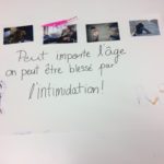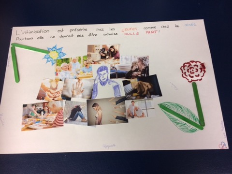 Dans le cadre du projet « Je prends ma place ! » contre l’intimidation, une dizaine d’élèves du premier cycle du Collège ont pris part à une activité de création intergénérationnelle. L’activité visait à mettre en dialogue des aînés et des jeunes afin de favoriser la création de liens entre les générations, mais également à discuter et à créer autour de la thématique de l’intimidation, qui peut être vécue par les deux générations.