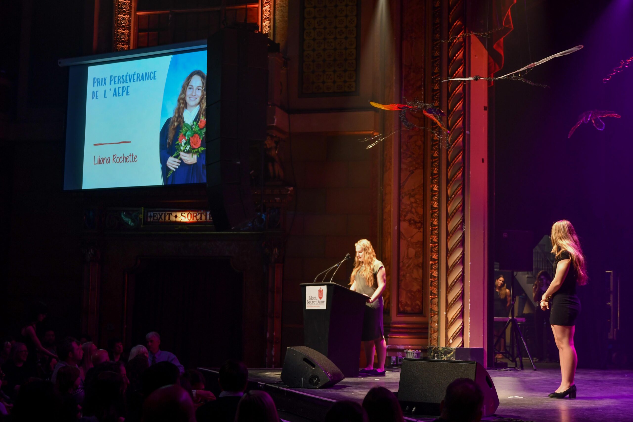Le 18 mai dernier, élèves nominées, familles et membres du personnel étaient conviés au Théâtre Granada pour la traditionnelle Soirée Reconnaissance du Mont. Cet événement permet de souligner de manière toute particulière les efforts et succès de nos élèves. Que ce soit un succès académique, une démonstration de persévérance scolaire, un engagement social important, un accomplissement personnel ou bien un impact positif sur les autres, nous souhaitons mettre en lumière le dépassement personnel de chacune d’entre elles.