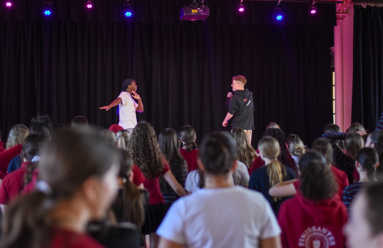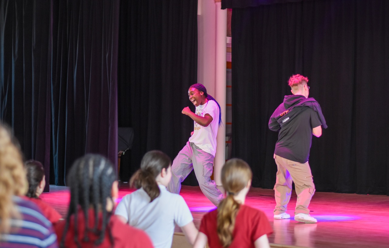 Le Comité Diversités+ a proposé à l’ensemble de l’école un atelier de danse afro avec l’unique Amanda Kacou, alias Ama (ancienne du Mont Notre-Dame) et son partenaire de danse, le talentueux Krank ! Quel beau partage culturel ! Le duo a rayonné l’automne dernier à la populaire émission Révolution, sur les ondes de TVA. DIFFO fait même partie de la tournée Révolution, qui se promène un peu partout au Québec. Vous comprendrez qu’il s’agissait d’une chance inouïe pour nous de les recevoir à l’école !