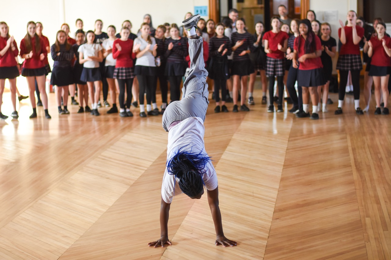 Les filles ont d’abord appris quelques mouvements spécifiques puis ont réinvesti le tout dans une petite séquence chorégraphique préparée par DIFFO. Elles étaient franchement belles à voir aller et on ressentait leur plaisir.